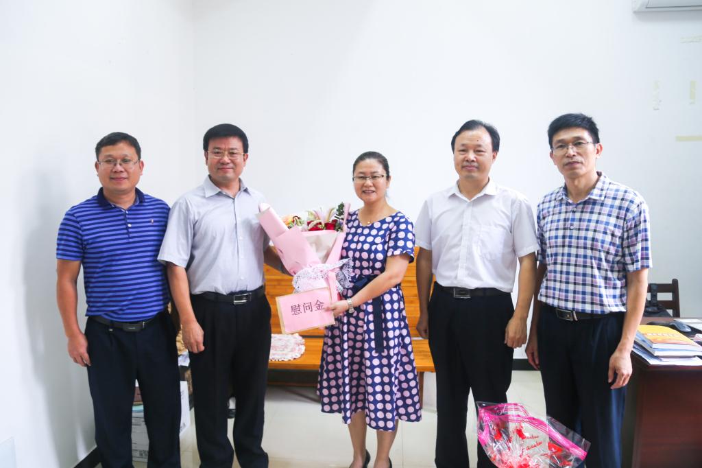 党委书记赵君(左二)慰问经济管理学院邢永梅老师 (中)