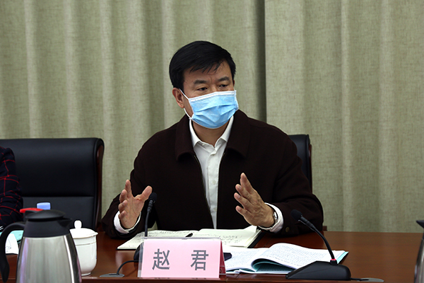 赵君书记进行了总结讲话,他对各级党组织下一步工作提出了三点要求:一是要全面把握2020年学校工作任务,认清发展思路,明确发展目标;二是要在推进学校改革建设中履行好主体责任;三是要把握好三个结合,即当前工作与疫情防控工作相结合、与主题教育整改工作相结合、与扶贫攻坚工作相结合,确保2020年工作任务顺利完成。