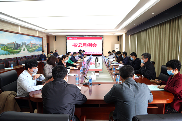 4月15日,学校在办公楼523会议室召开2020年第一次书记月例会,学校党委书记赵君出席会议,党委副书记陈锦山主持会议,党委职能部门负责人、二级党组织书记参加会议。
