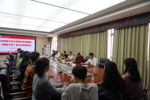 10月30日下午,北部湾大学大型现代原创舞剧《窑变千彩》演出总结表彰会在我校办公楼523会议室举行。学校党委副书记陈湘如,《窑变千彩》编导、舞蹈教育家彭武出席会议。会议由党委常委、宣传部部长马秀明主持。