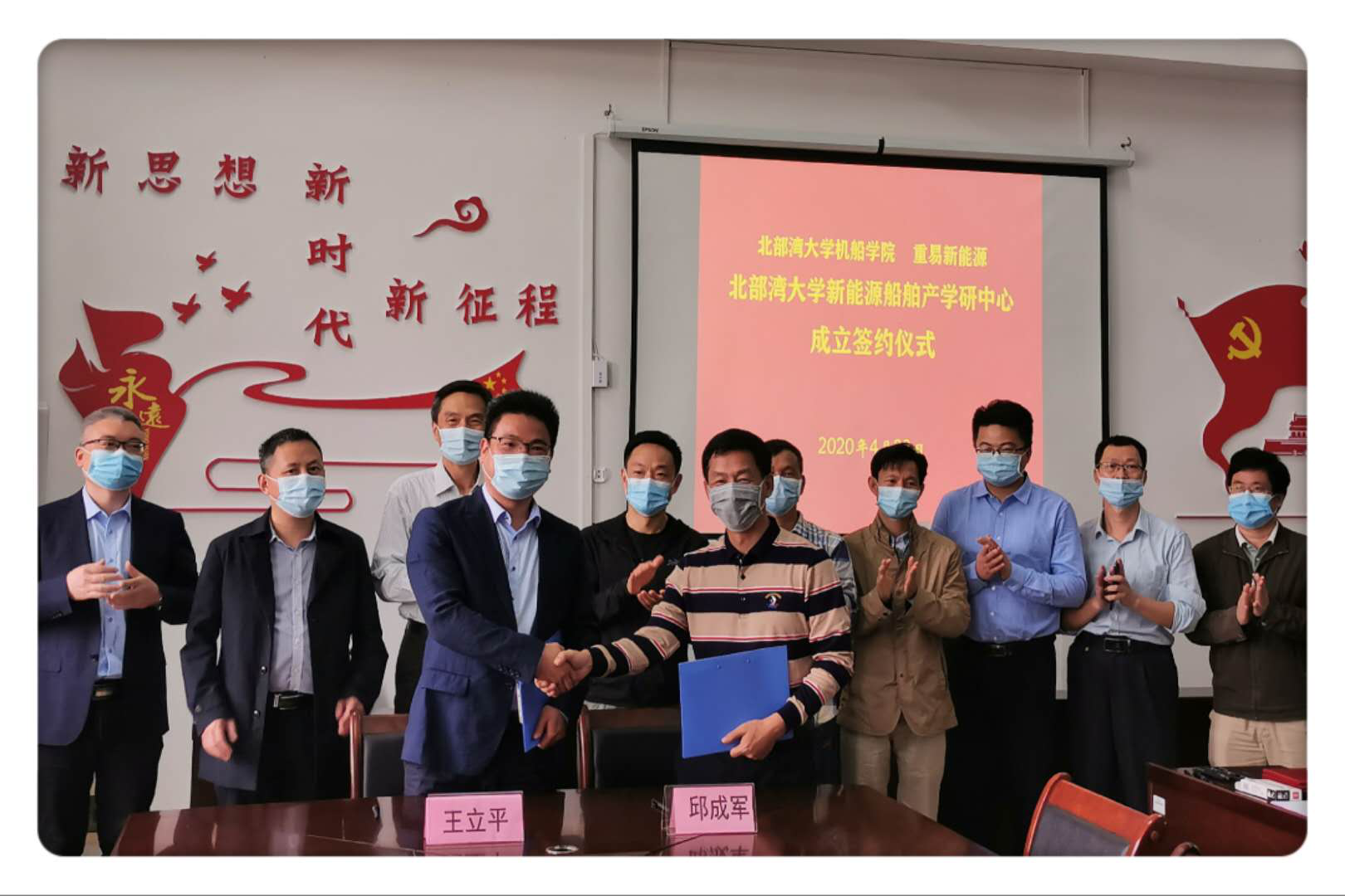 4月22日,中船集团衡远科技有限公司、广西重易新能源有限公司和中铁十四局南玉高铁商砼公司等应我校机械与船舶海洋工程学院的邀请,在交通部通航评估专家、北部湾大学名誉教授、广西海事局原副局长申春生的带领下到学院开展校企合作工作交流会。会上,我校与重易新能源有限公司签订了共建北部湾大学新能源船舶产学研中心合作协议。学校党委副书记陈湘如出席交流会并见证双方签约。交流会由机船学院院长邱成军主持。