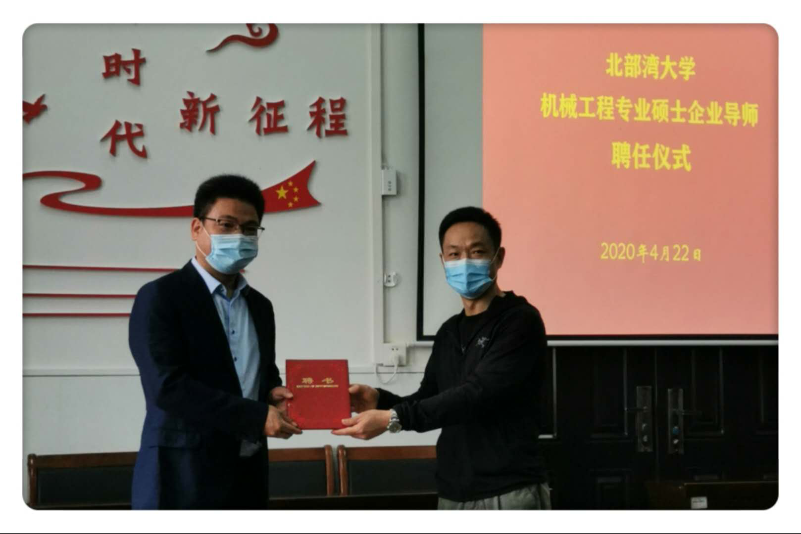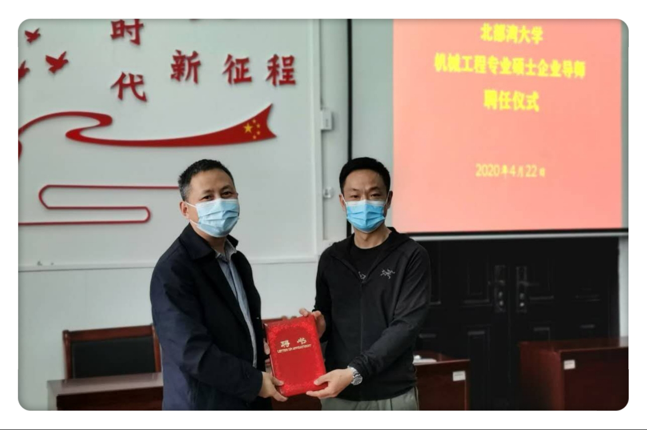 签约仪式上,邱成军院长与王立平董事长签订了共建北部湾大学新能源船舶产学研中心合作协议。陈湘如副书记向王立平董事长、中船衡远科技张炳昌董事长颁发北部湾大学机械工程专业硕士企业导师聘书。