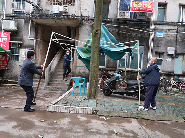 随后,由校疫情防控办、工会、保卫处、国资处、后勤基建处、后勤服务集团指导,宣传部组织力量在小区张贴海报和发放传疫情防控常识宣单,广泛宣传动员,校长办公室印发书面《通知》、制作《住户人员出入证》发送到每一位住户人员,教育和引导住户人员严格按照钦州市防疫部门要求,自觉服从小区和社区管理。后勤集团购置垃圾桶、铁铲、扫把等环卫用具。两住宅小区党员志愿服务工作组、住宅区临时业主委员会立刻行动起来,组织本小区全体住户按通知要求组织教职工进行整改,党员干部带头参加环境清洁卫生大扫除,及时治理在小区饲养家禽和种菜等现象。明确了工作职责,落实了环卫清洁人员每天清洁清运,彻底改变了“脏、乱、差”的旧容貌 。