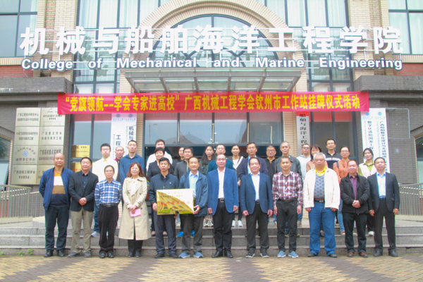 11月3日,广西机械工程学会理事长李尚平教授一行12人到我校机械与船舶海洋工程学院开展“党旗领航--学会专家进高校”暨学会钦州市工作站挂牌仪式活动。校党委常委、副校长唐高华出席揭牌仪式,机械与船舶海洋工程学院领导班子、教师代表参加揭牌仪式。该学院党委书记何永玲主持活动。