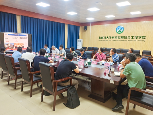 海洋学院、机船学院、资环学院分别介绍本学院相关情况。与会人员重点围绕科研成果转化、高校助推北部湾区域经济发展等方面进行了深入探讨。