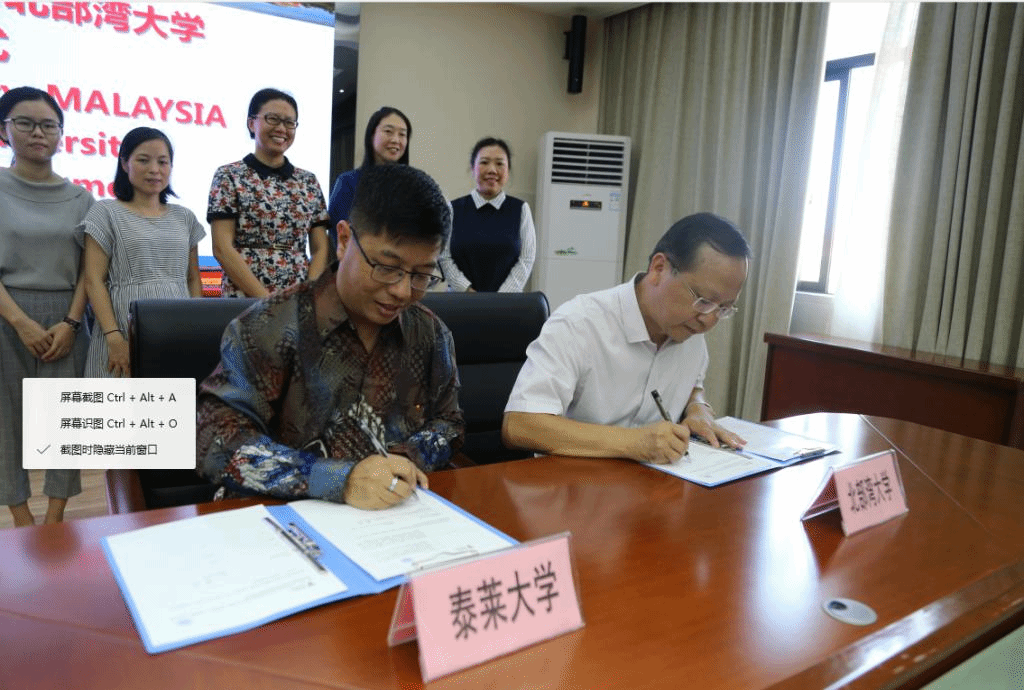 9月20日下午,马来西亚泰莱大学国交处处长林国贤代表团一行4人到访我校,双方在办公楼523会议室洽谈合作并签署了合作协议。
