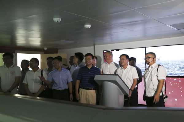 博白县领导参观“技术扶贫”船员培训用教学平台——海运学院一体化航海模拟实验室
