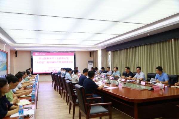 7月15日下午,自治区教育厅规划处处长伍锦昌为组长的第一调研组一行5人到我校召开广西教育“十四五”规划编制工作调研座谈会。学校党委副书记陈锦山及相关职能部门负责人参加了会议。