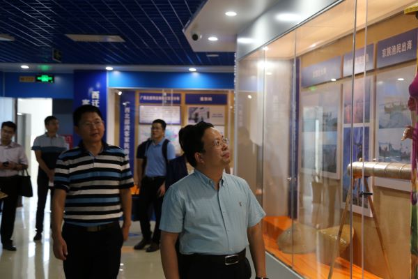 会前,调研组伍锦昌处长一行在陈磊副校长的陪同下深入学校海洋文化博物馆、无人机实训室等实地调研。