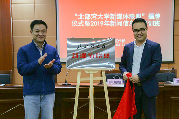 陈湘如副书记与马秀明部长共同为“北部湾大学新媒体联盟”揭牌
