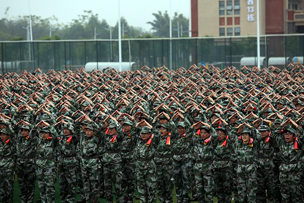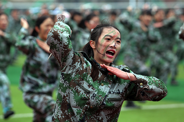 持枪方阵、分列式方阵、女子队列方阵、拳术方阵、匕首方阵、战术方阵……今年的新生军训汇演中,三千多名萌新用他们燃爆全场的实力为大学里的第一次“大考”交上了一份杠杠的答卷。