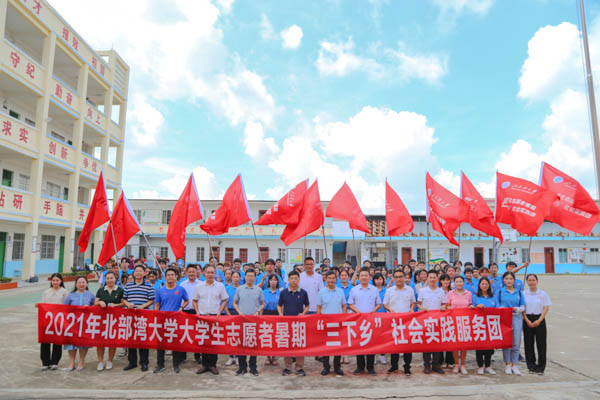 7月12日上午,学校2021年大学生志愿者暑期“三下乡”社会实践启动仪式在博白帮扶定点村富门村举行,近200名学生志愿者分赴田间地头助力乡村振兴。