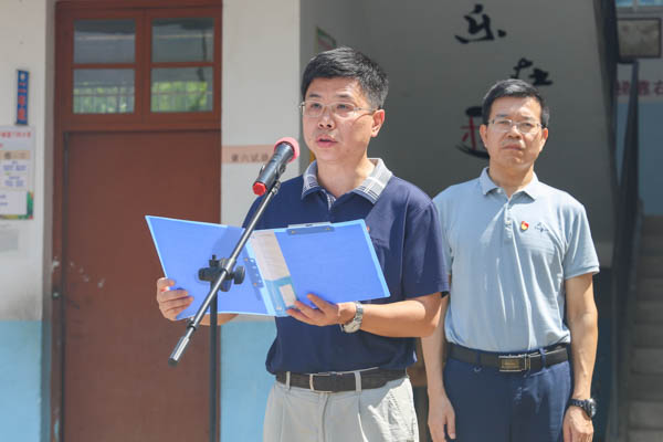 学校领导为社会实践服务团队授旗,标志着学校2021年大学生志愿者暑期“三下乡”社会实践活动正式启动。