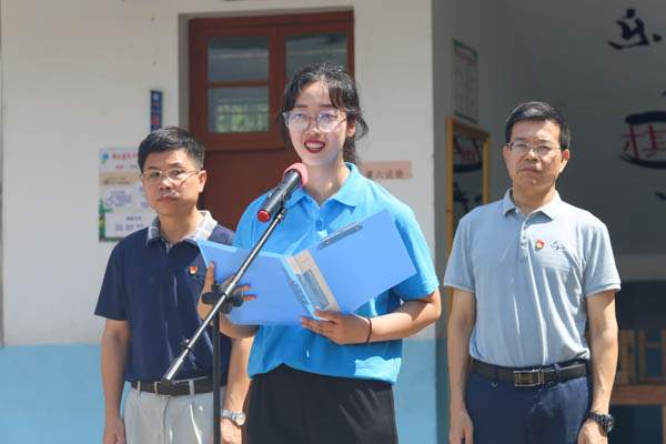 这是我校暑期“三下乡”活动开展以来,启动仪式首次在学校帮扶定点村举行。13支服务团队近200名大学生志愿者结合乡村振兴工作,依托学校办学特色和学科专业优势,紧紧围绕党史学习教育、海洋文化科普、禁毒防艾、电信诈骗、爱心助教等主题开展社会实践。(李树艳 郑毅 摄)