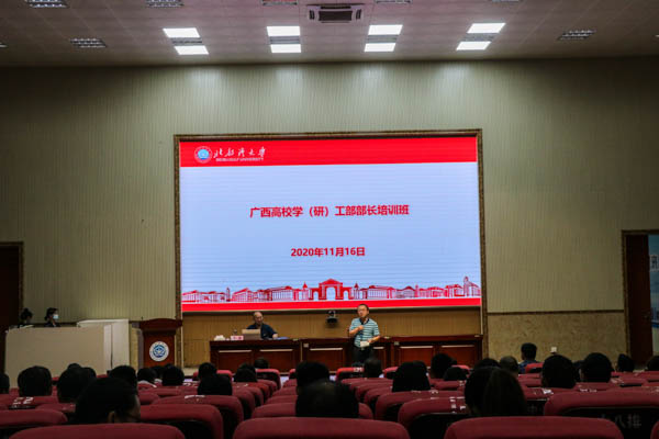 11月18日上午,北京师范大学思想政治教育研究院院长冯刚教授应邀到校为2020年广西高校学(研)工部部长培训班学员授课。全区90名学(研)工部部长及我校辅导员聆听报告。
