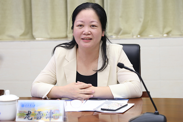 龙雪津对我校后勤管理和队伍建设等方面工作给予了高度赞扬。她表示,广西开放大学将充分学习借鉴我校后勤管理经验,完善后勤保障工作,加强校园管理,以促进学校建设发展。(龚瑜浚 黄营营 摄)
