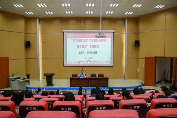 3月27日,邓纯东教授应邀到校为全区各高校思想政治理论课教师及“形势与政策”课课程负责人和骨干教师做题为“学习理解2021年全国两会精神的四个要点”的专题报告。邓纯东教授系十三届全国政协社会和法制委员会委员,中国社会科学院马克思主义研究院党委书记、院长,中国社会科学院马克思主义研究院创新工程首席管理专家。