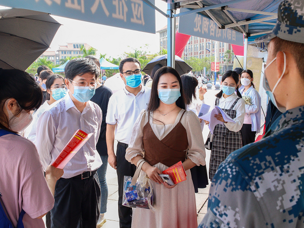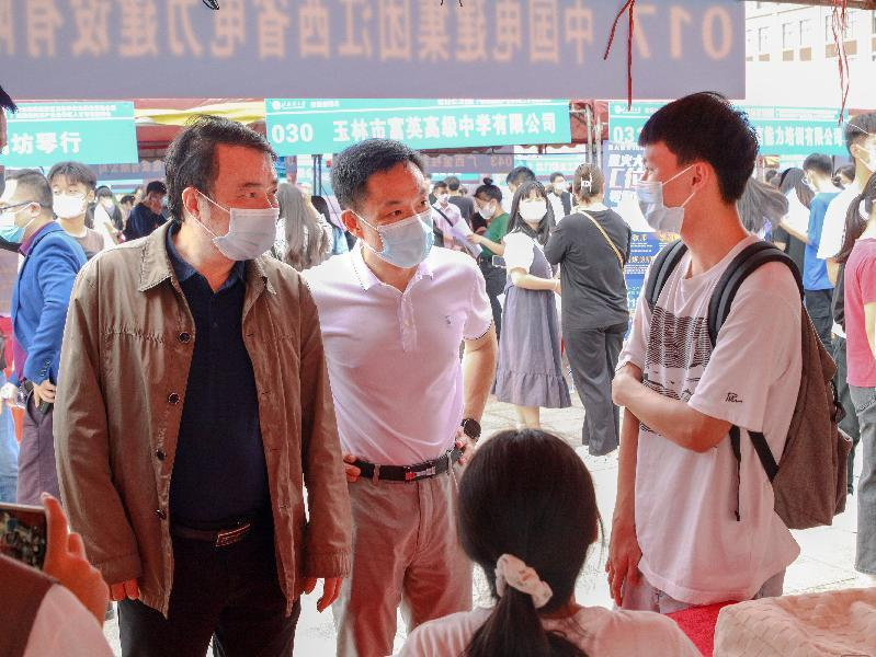 陈湘如副书记(左二)、蒋瀚洲主任(左一)与前来参加双选会的毕业生交流