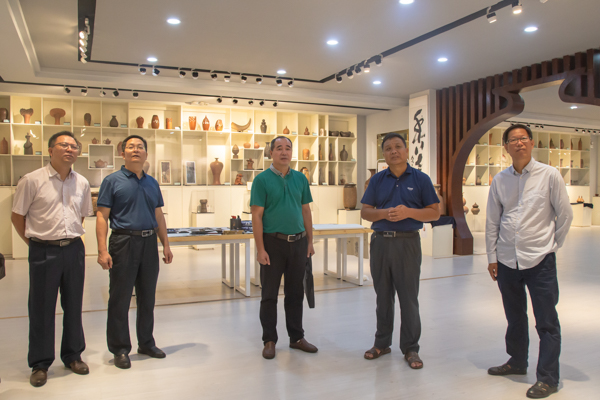 会前,周旺一行实地参观了我校坭兴陶展厅。(李树艳 摄)