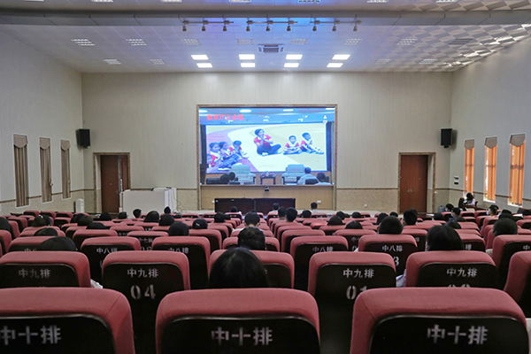 师生代表认真观看视频报告会