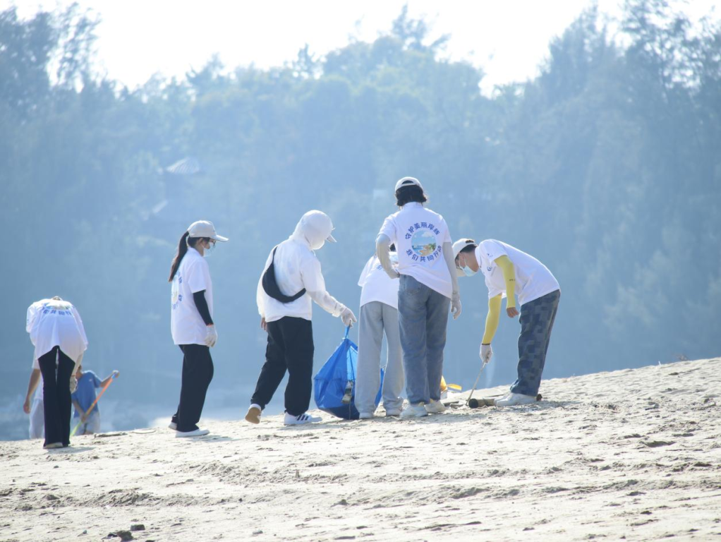 在钦州市三娘湾净滩公益活动中,学校80多名志愿者捡拾泡沫、渔网、塑料瓶、垃圾袋等海洋垃圾并对其进行分类、称重和记录,据统计,本次活动共清理垃圾267千克。