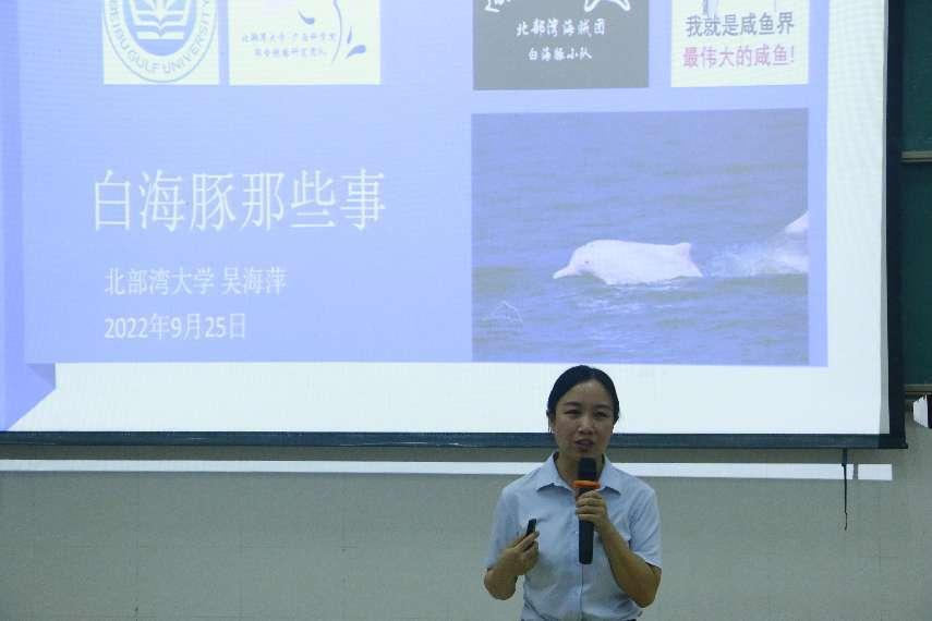 在中华白海豚、中国鲎保育科普讲座活动中,吴海萍教授生动描绘了中华白海豚生活史、遇到的困扰和问题以及对海洋环境的期望,启迪大家与海豚换位感受,守护海洋。廖永岩教授透彻地分析了中国鲎的生活史、生态价值、科研价值和医药价值,以及现在中国鲎所面临的濒危问题和部分解决方案,引人思考。