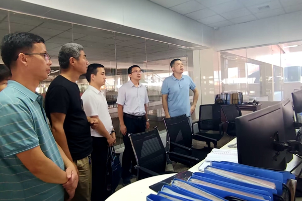 陈磊(右二)一行参观燕京啤酒(桂林漓泉)股份有限公司生产线