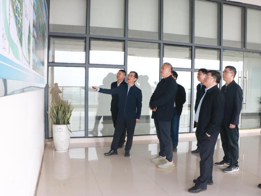 沙君俊(右二)、陈锦山(左二)、谢立平(右一)陪同胡云腾(左三)实地调研