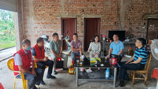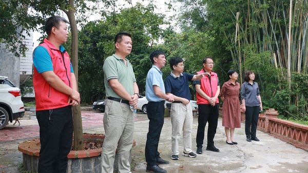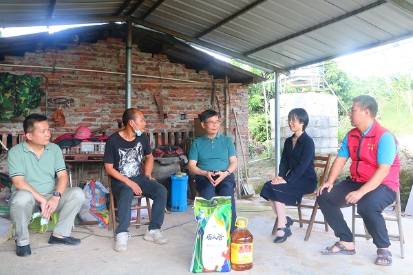 纪委书记覃宇环、总会计师梁智与驻村干部走访慰问帮扶户