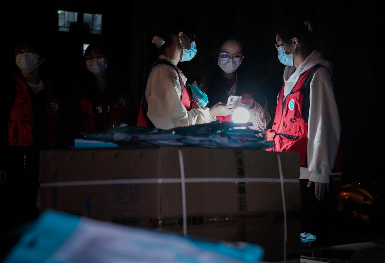 备受关爱的学生们,也纷纷在深夜的朋友圈晒起了湾大的独一份“罩”顾:“湾大深夜来送爱,真的爱了爱了,虽然今天降温了,但是心里依然暖暖的。”“一整个感动住,感受到了学校对我们沉甸甸的爱!”大家纷纷感慨,疫情防控,上下一心,闻令而动,所有人的付出和坚守见证了“倒春寒”里的湾大温度。(卢子旺 陆桥生 摄)