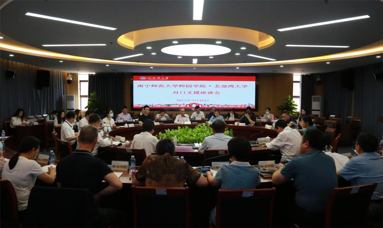 5月16日,南宁师范大学师园学院 北部湾大学对口支援座谈会在学校国际交流中心222会议室举行。南宁师范大学师园学院副院长卢敏秋一行到校商谈对口支援工作。学校副校长黄鹄出席会议。会议由学校发展规划处、研究生处处长刘琼主持。
