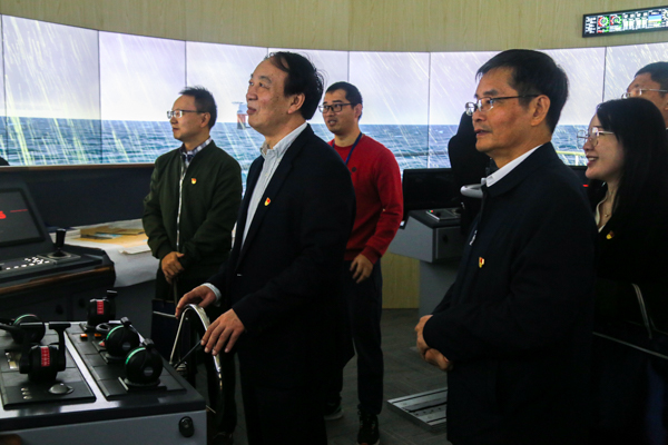 调研组一行实地走访海运学院航海轮机一体化仿真模拟实验室