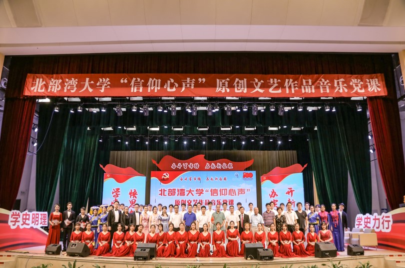 学校将党史和校史紧密结合,深挖校史中的红色资源。学校在广西高校中率先设立党史馆和“红色书屋”,探索红色文化与党建文化融合发展的新途径;创作了《薪火》《湾大红》《湾大青年说》《仰望牛圩坡》等原创党史校史文艺作品,展示了北部湾大学与中国共产党同心同向同行的峥嵘岁月,展示了在党的坚强领导下,学校取得的一系列新成就。