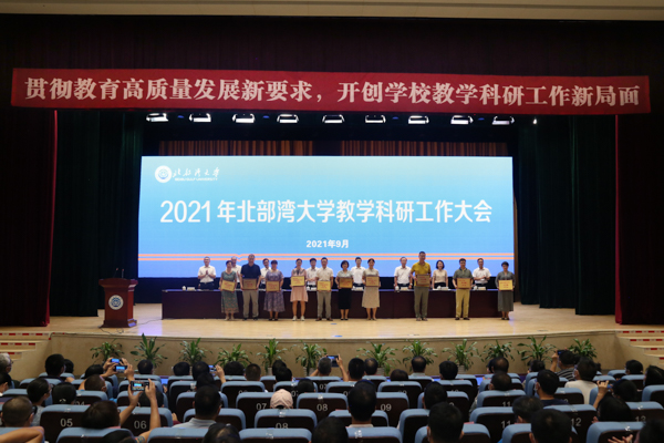 学校党委副书记、校长林基明作题为《深化改革强化特色奋力开创北部湾大学教学科研工作新局面》专题报告。林基明深入分析了学校在“十四五”期间面临的新机遇、新挑战,剖析了与区内老牌大学相比,学校在人才队伍、学科建设、科研水平、管理水平等诸多方面存在的差距和不足,同时清晰地描绘了学校“十四五”时期教学科研工作的努力方向和工作任务。