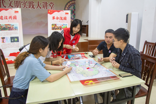 社区学员们与分队成员一起完成列强瓜分中国图解