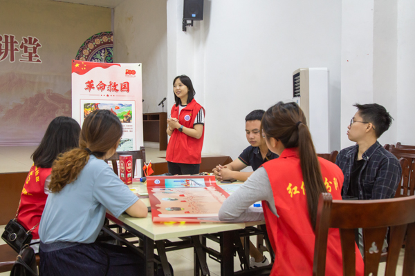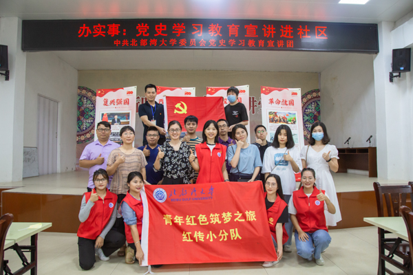 7月23日,北部湾大学党委宣传部、经济管理学院组织“红传”小分队成员带着“可视化学习教育课堂”走进文昌社区,把“移动党史馆”搬到了社区群众家门口,与社区的党员、群众共同开展了一场可视化党史学习教育。