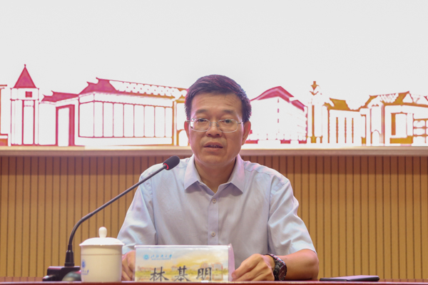 8月31日上午,百色干部学院常务副院长唐秀玲教授以“奋进百年路 开启新征程”为题,在12号教学楼204报告厅,为北部湾大学暑期中层领导干部培训班学员们解读了习近平总书记“七一”重要讲话精神和视察广西重要讲话精神。学校党委副书记、校长林基明主持讲座。