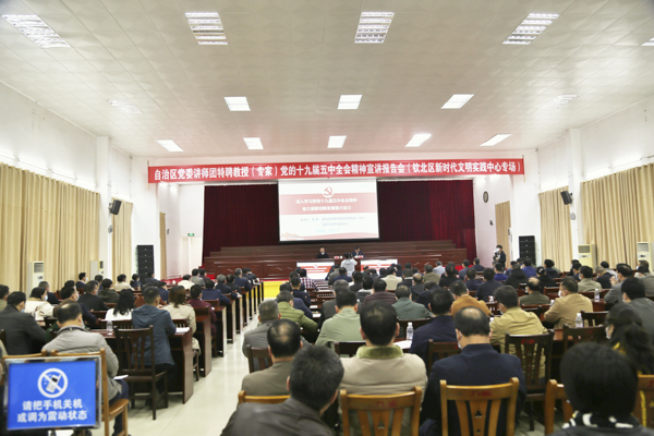 12月7日,我校党委书记赵君作为自治区党委讲师团特聘教授(专家)赴钦北区新时代文明实践中心开展学习贯彻党的十九届五中全会精神宣讲报告会。区委书记黄治华主持报告会,区委副书记、区长邓洁丽等区四家班子在家领导聆听宣讲。