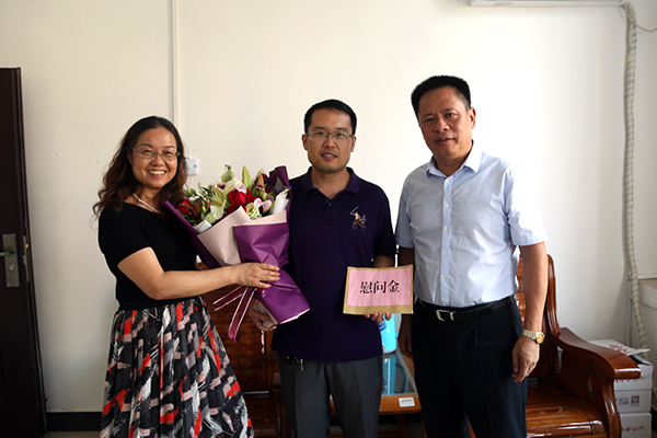 今天是第35个教师节,2019年教师节的主题是:庆祝新中国七十华诞,弘扬新时代尊师风尚。9月5日-9日,学校党委书记赵君,校长韩峻峰,党委副书记陈湘如,副校长曾彦、黄鹄、唐高华等在家校领导分别带队看望慰问一线教师代表,向默默奉献在教育战线上的教师致以节日的问候和崇高的敬意。