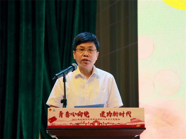 陈磊宣读了表彰文件。2020年度中国大学生自强之星获得者、2020年度中国电信奖学金·飞young奖获得者,8个2021年度五四红旗团委、34个五四红旗团支部、12名优秀专职共青团干部、143名优秀共青团干部、282名优秀共青团员、45名优秀团支部书记、77名共青团宣传工作先进个人、77名共青团“第二课堂”工作先进工作者、368名疫情防控志愿者受到表彰。
