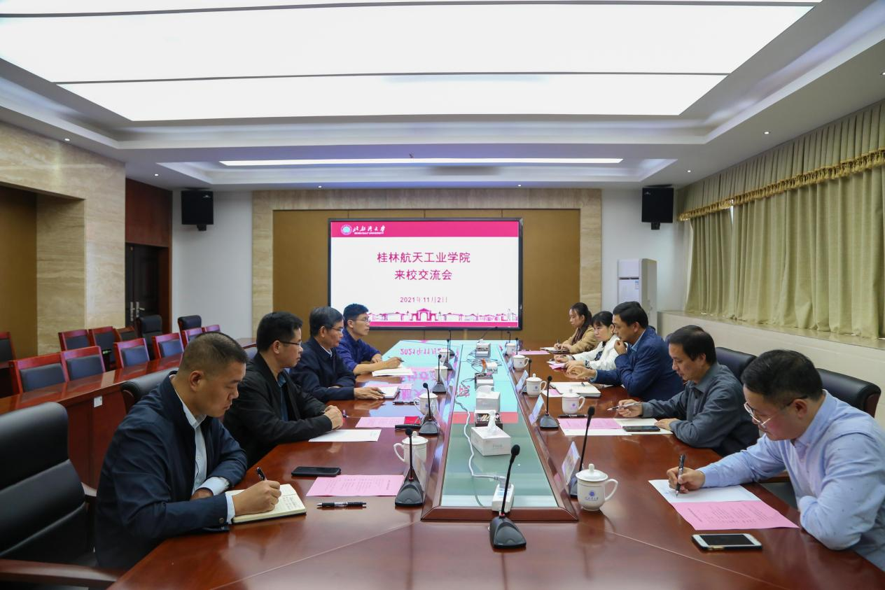 11月2日,桂林航天工业学院副校长吴世先一行5人到我校调研交流。校党委副书记陈锦山主持座谈会,学校人事处、财务处、国有资产管理处主要领导参加交流会。
