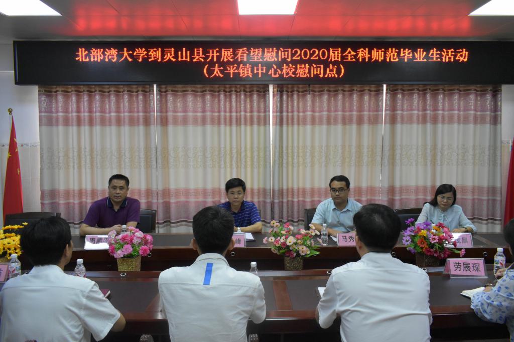 潘荣胜赞扬湾大毕业生基本功扎实,教学能力好,适应能力强,希望湾大能继续为灵山培养更多优秀的师资。姚家文表示将尽最大努力为他们提供良好的工作条件,希望他们做好本职的同时进一步提升职称和学历。