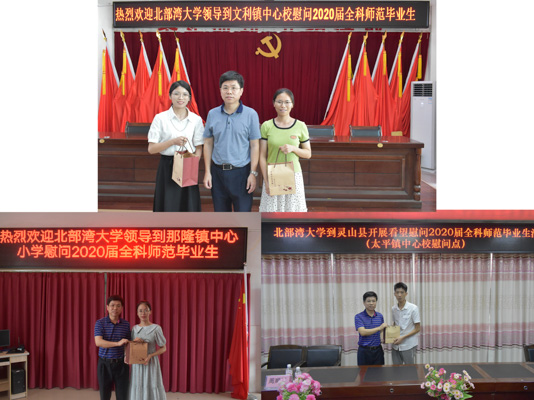 5月19日至20日,学校党委书记韩峻峰率队奔赴灵山县,先后走访了五所小学,看望慰问全科师范毕业生和实习实习生。灵山县人大常委会副主任潘荣胜,灵山县教育局副局长姚家文等领导陪同走访。