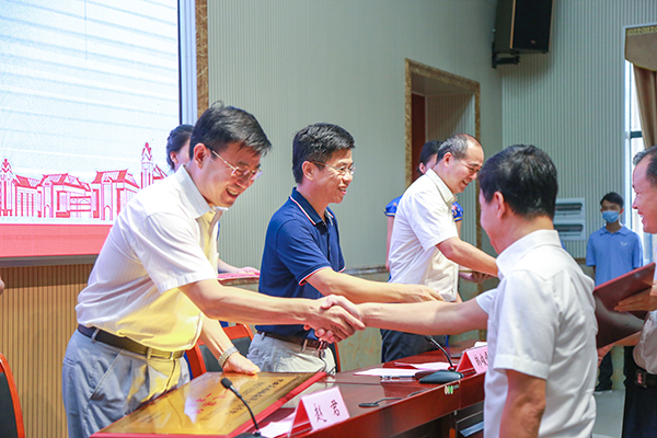 赵君书记(左一)、韩峻峰校长(左二)为先进集体颁发证书