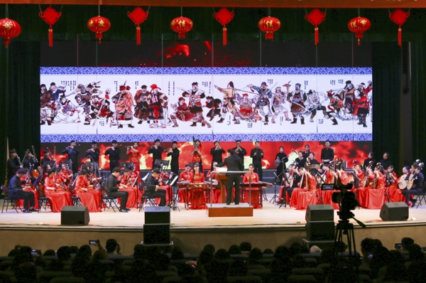 随后,我校人文学院教师携民族管弦乐团、管乐团、12点半合唱团的成员们一同登台演出。上半场器乐演奏中热烈欢乐的《欢腾的节目》、豪迈奔放的《好汉歌》、热情洋溢的《凤凰序曲》,俏皮幽默的《掌声》、悠扬婉转的《映山红》、华丽壮阔的钢琴协奏曲《黄河》如一篇篇华彩乐章,让观众如痴如醉。下半场声乐演唱则选取了不同时期的经典曲目,《从七月开始》听从党的召唤到《嘉陵江上》《黄河怨》中投入抗战、收复失地的决心,从《再见了,大别山》的挺进志向到《红旗颂》里迈出的巨人步伐,再到新时代的《不忘初心》《我爱你中国》,观众们与演员一起全情投入,感受了中华民族从站起来到强起来的伟大历程。
