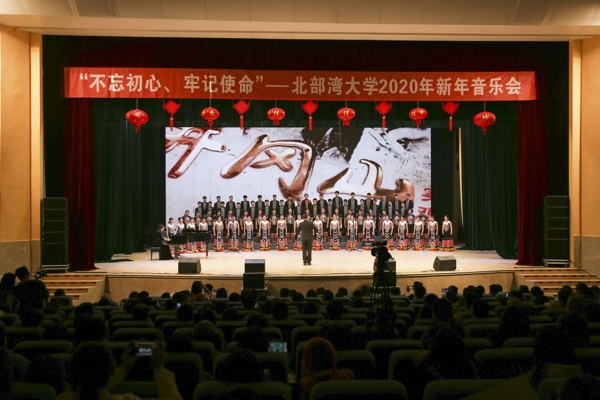 12月30日晚,我校“不忘初心、牢记使命”2020年新年音乐会在礼堂隆重举行。学校党委书记赵君,校长韩峻峰,党委副书记陈锦山、陈湘如,纪委书记覃宇环,广西鸿翔船务公司、中马产业园中交城公司等校企合作代表与学校师生、社会各界人士1500余名共同欣赏了音乐会。