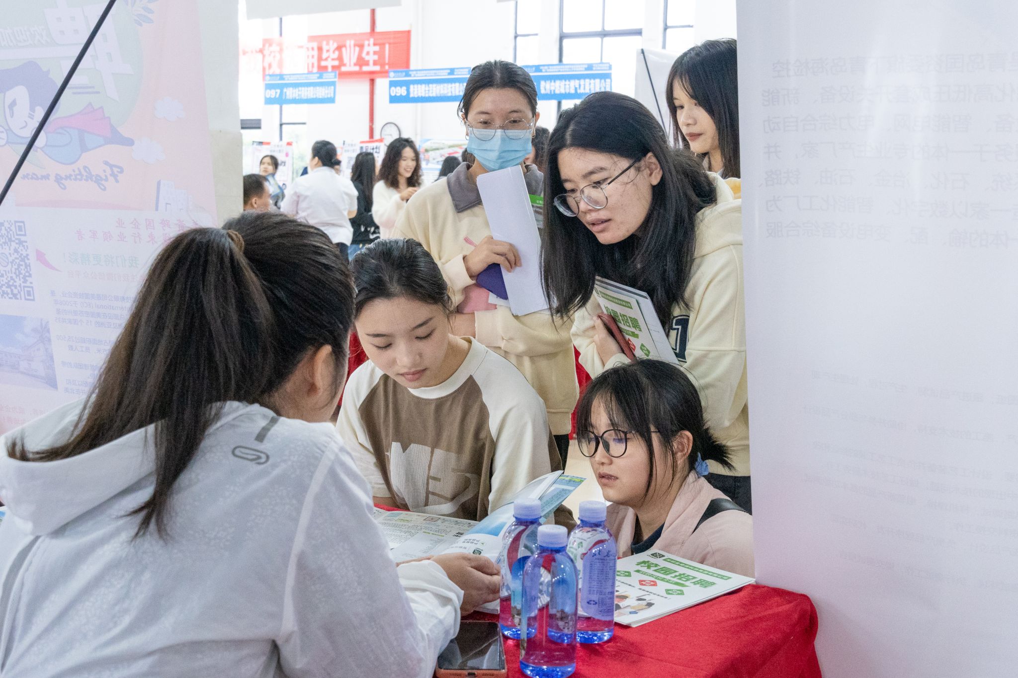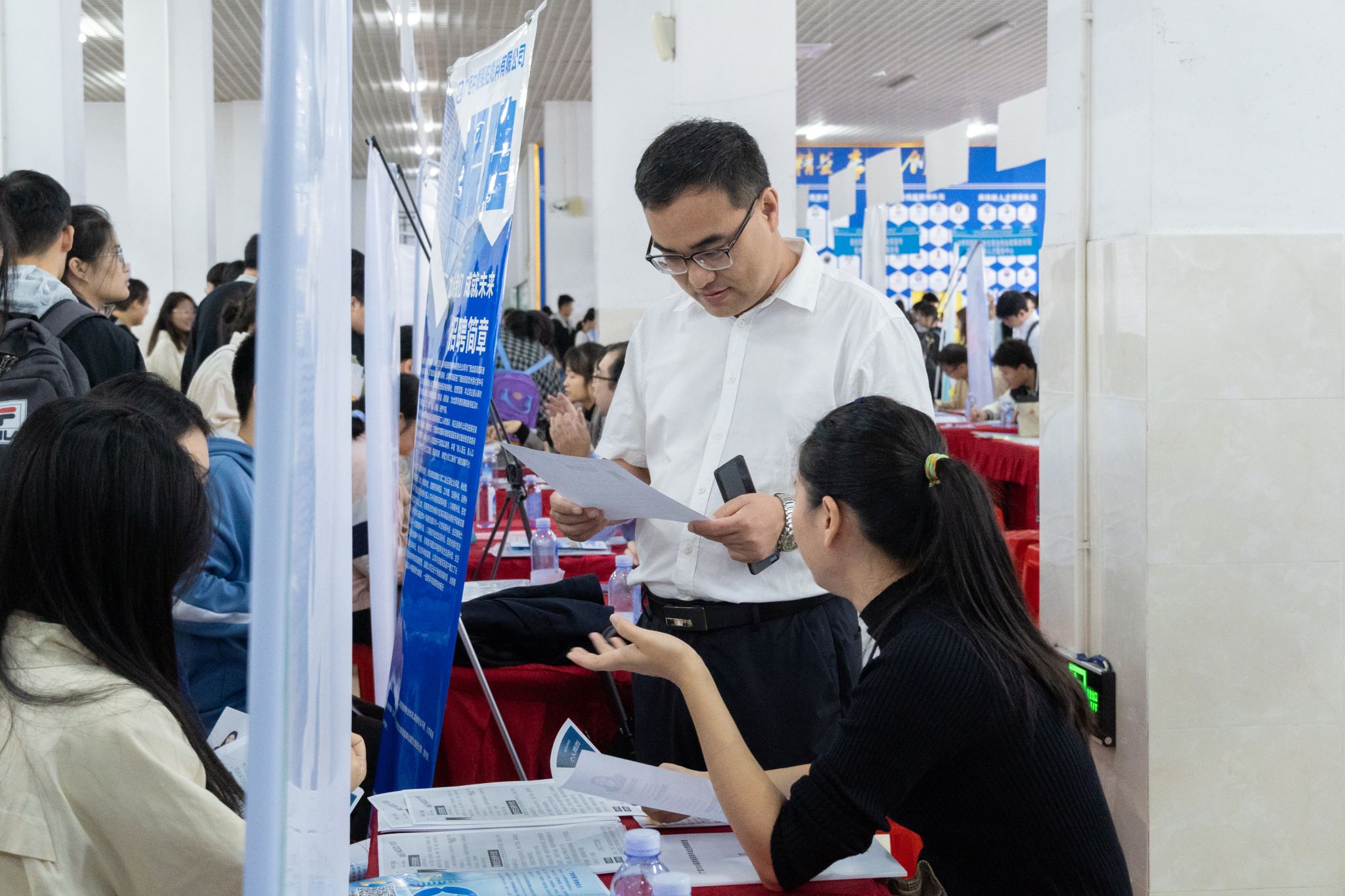 据悉,为更好地搭建学生与企业之间就业沟通的桥梁,为学生提供更优质的工作单位。学校于9月初就启动了2024届毕业生就业工作,至今已举办了四场线下校园双选会,共邀请300余家企业进校招聘,提供招聘岗位近13500个,共计超过2220人达成初步就业意向。(覃焕展 摄)