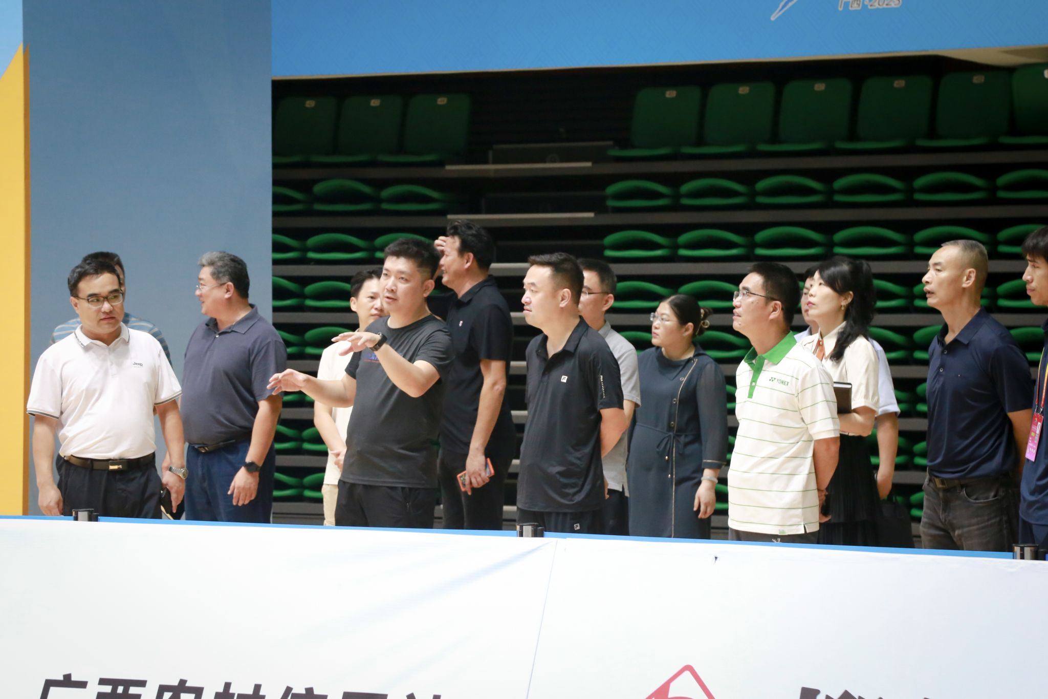 苗剑校长(中)带队检查北部湾大学赛场的场地建设情况