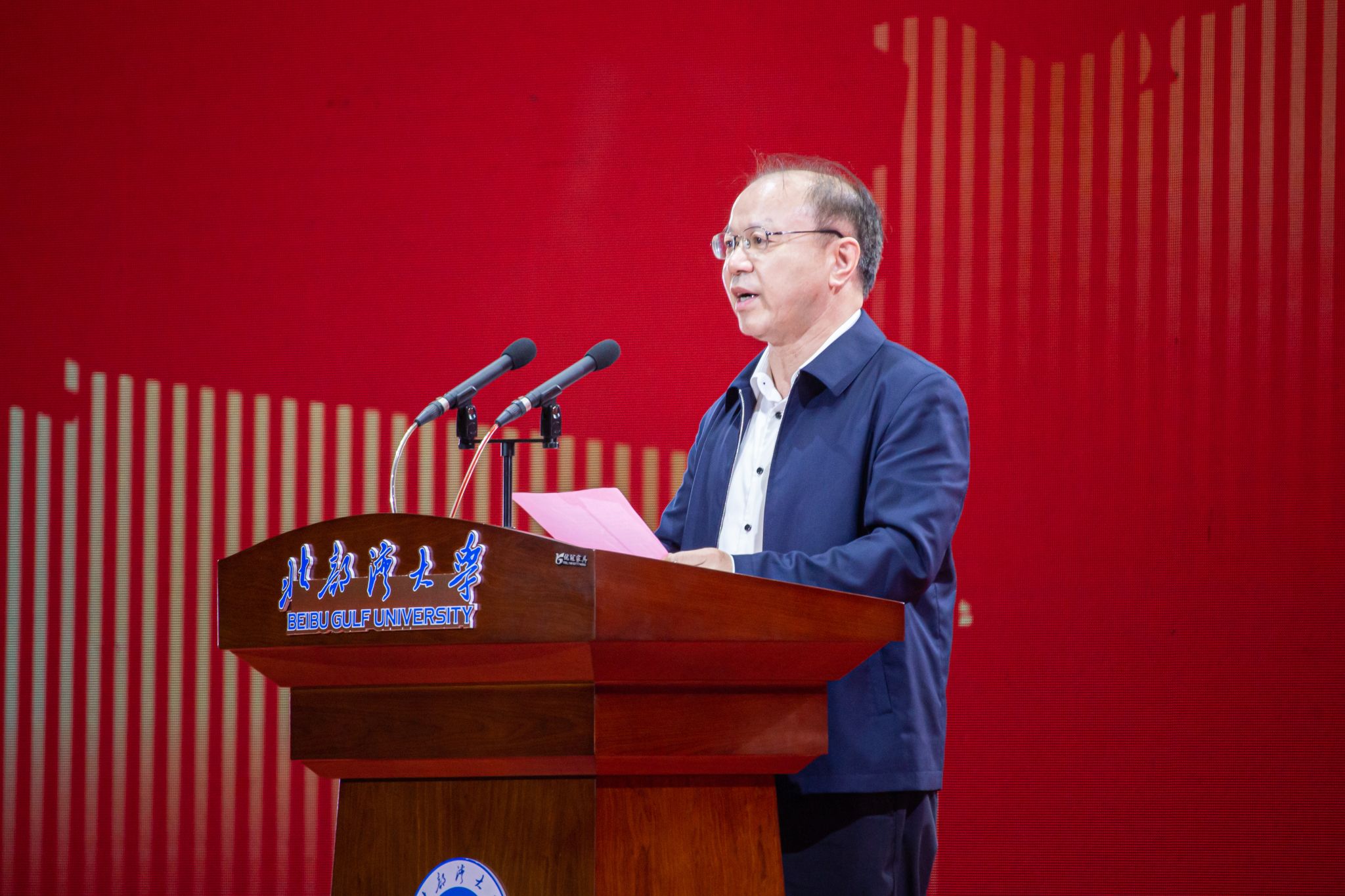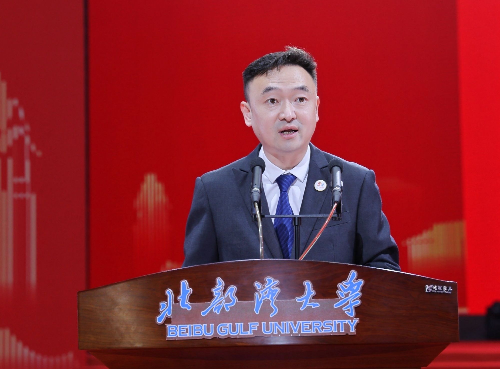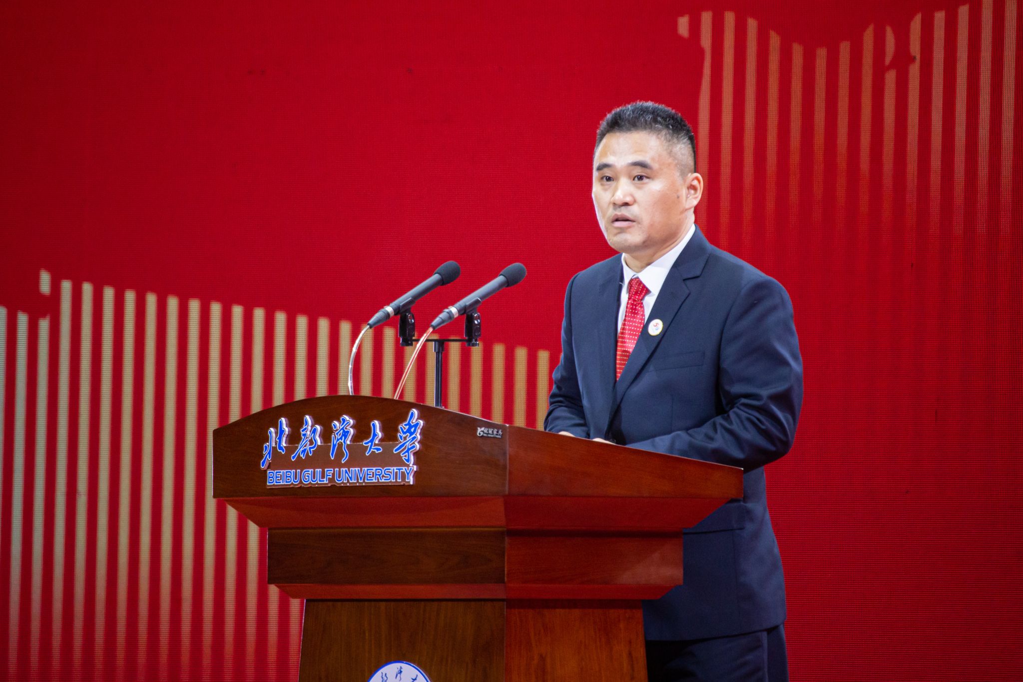 北部湾大学党委副书记、校长苗剑在致辞中倾情回顾了学校从一所传统师专到综合性应用型大学的跨越式办学历程。他表示,北部湾大学将坚守“为党育人、为国育才”的初心使命,传承“博观内省,达道知行”的校训精神,奋力推进海洋特色鲜明的高水平应用型大学建设,为谱写中国式现代化广西篇章,推进中华民族伟大复兴,做出新的更大的贡献。