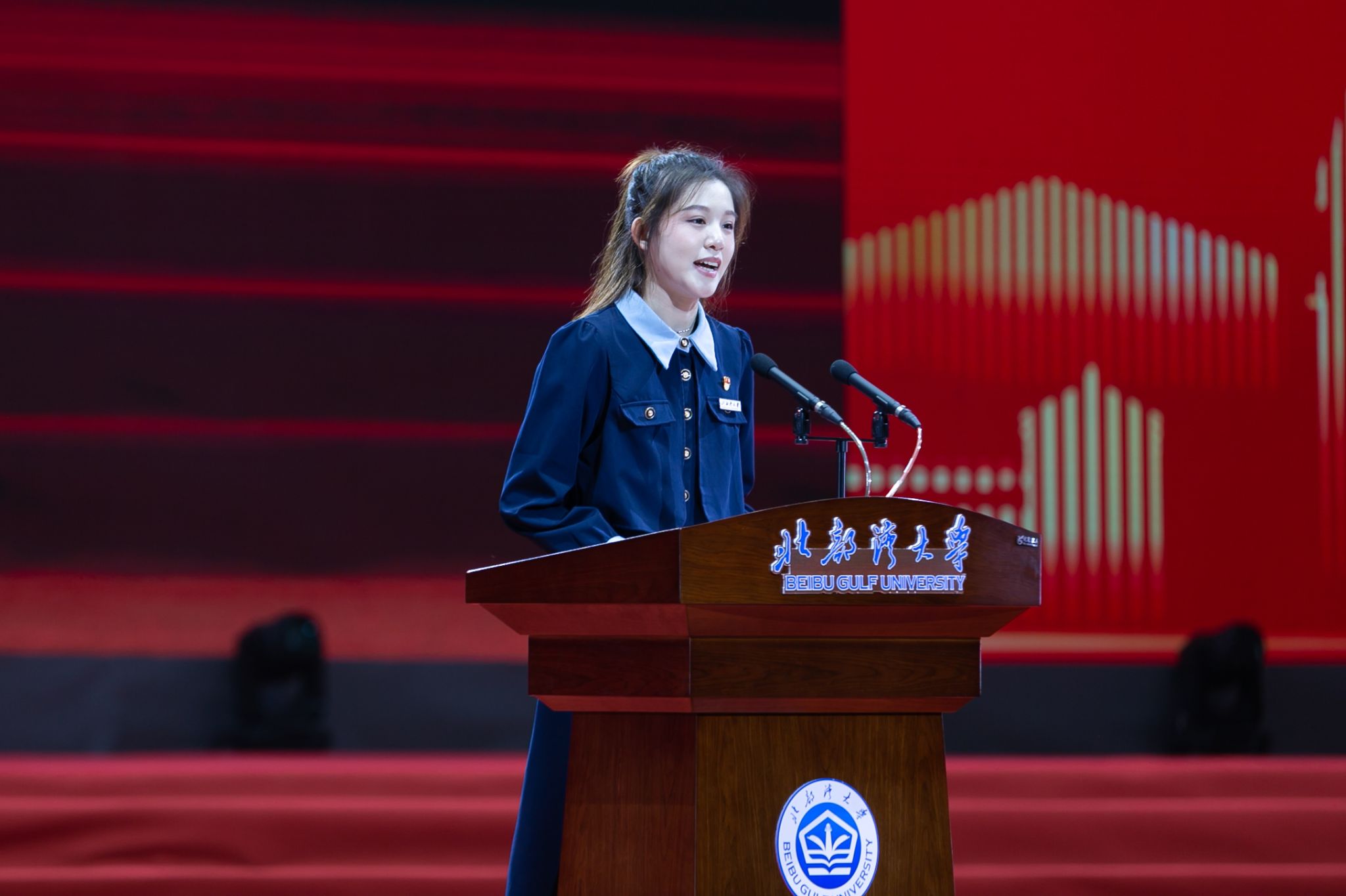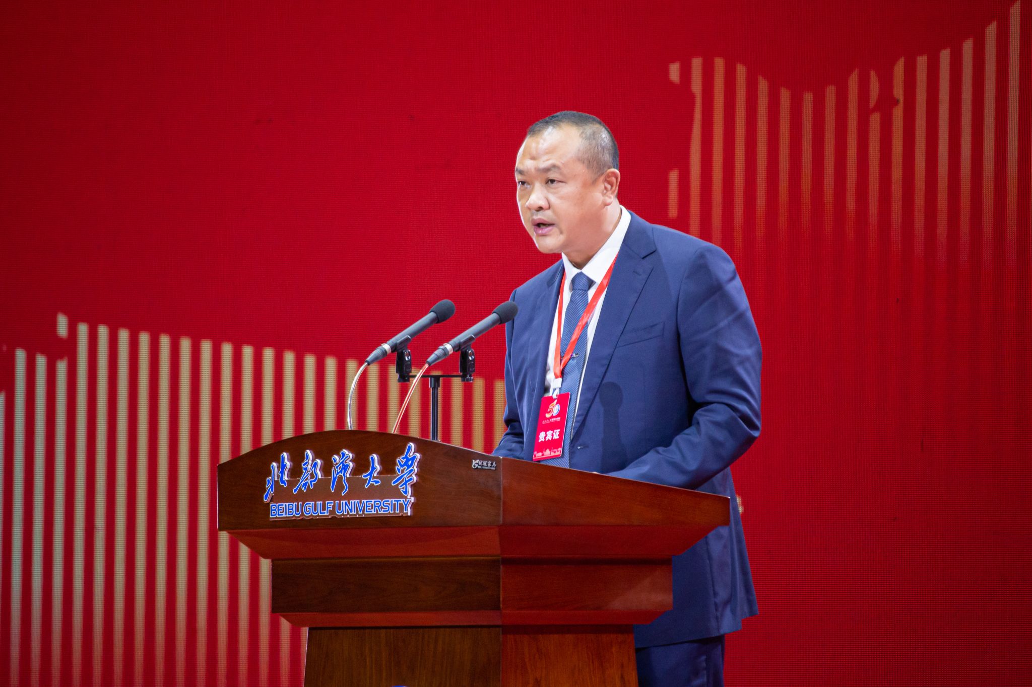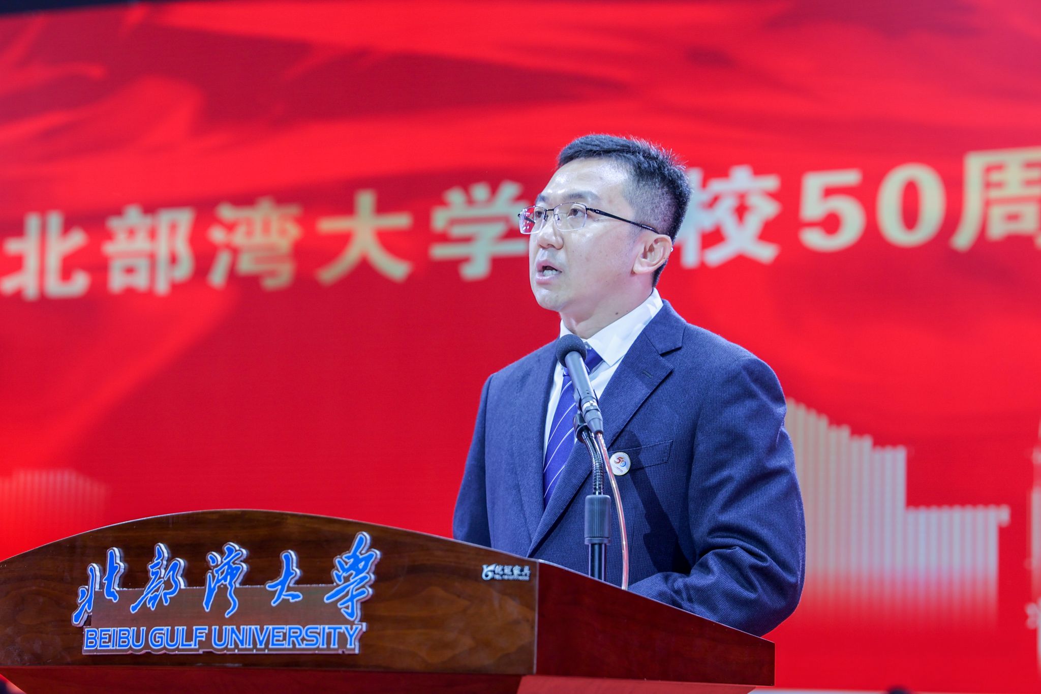 北部湾大学党委副书记、校长苗剑在致辞中倾情回顾了学校从一所传统师专到综合性应用型大学的跨越式办学历程。他表示,北部湾大学将坚守“为党育人、为国育才”的初心使命,传承“博观内省,达道知行”的校训精神,奋力推进海洋特色鲜明的高水平应用型大学建设,为谱写中国式现代化广西篇章,推进中华民族伟大复兴,做出新的更大的贡献。